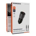 Porodo 95W Transparent Car Charger with 90cm USB-C to Lightning Cable, Zinc Alloy & PC Material, 30W USB-A & 65W USB-C Outputs, Simultaneous Fast Charging, Universal Compatibility - Gray