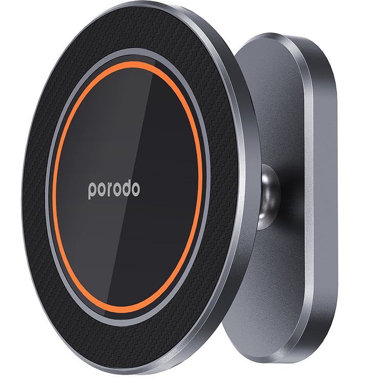 Porodo Aluminum Alloy MagSafe Mount Metal Base & Smooth 360° Rotation, x17 Embedded Magnets, Premium Carbon Fiber Texture, ×4 N54 Rear Mounting Magnet - Gray