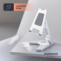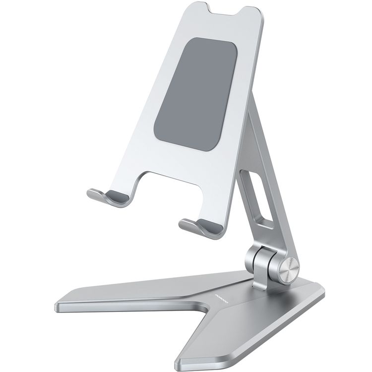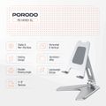 Porodo Aluminum Alloy Mobile Stand with Flexible Viewing Angle, 4" to 8" Phone Compatibility, Horizontal & Vertical Modes, Stable & Non-Slip Base, Foldable Design - Silver