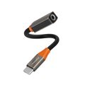 Porodo AudioLink USB-C to 3.5mm Audio Jack Adapter with 10cm Length, Braided Nylon with Aluminum Shell Material, Built-in DAC Chip, Tangle-Free Design, Plug & Play, High-Fidelity Audio - Black / Orange