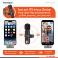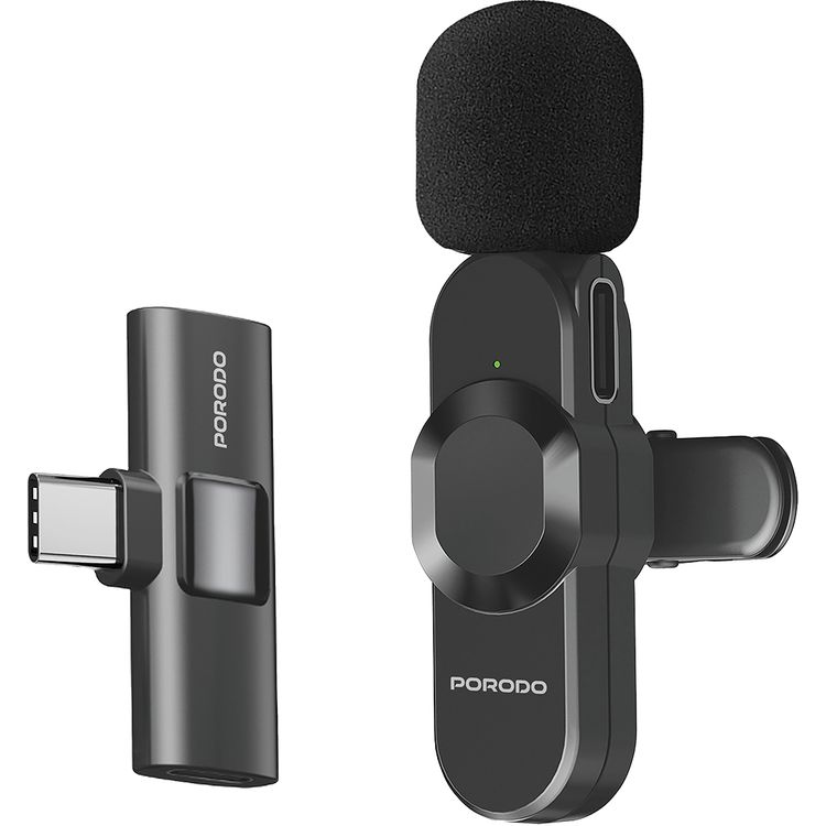 Porodo Audix Lavalier Microphone with Type-C & Lightning Connectoer, Up to 3 Hours Working Time, 1 Hour Charging Time, 40mAh Battery Capacity, Instant Wireless Setup, Auto Pairing Technology, Precise Reverb - Black