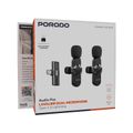Porodo Audix Pro Lavalier Dual Microphones with Type-C & Lightning Connectoer, Up to 3 Hours Working Time, 1 Hour Charging Time, 40mAh Battery Capacity, Instant Wireless Setup, Auto Pairing Technology, Precise Reverb - Black
