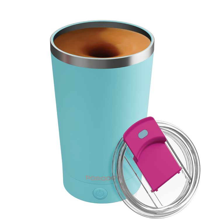 Porodo Automatic Magnetic Stirring Mug with Detachable Base Design, 7000RPM Stirring Speed, IPX6 Water-Resistance Level, 400mL Capacity, Leakproof Silicone Lid, 300mAh Battery, USB-C Charging Port - Blue