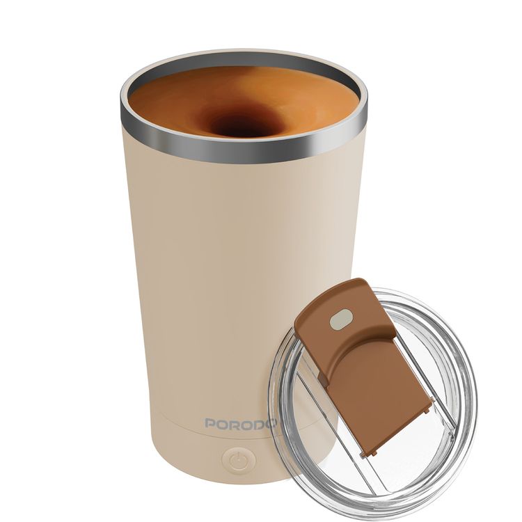 Porodo Automatic Magnetic Stirring Mug with Detachable Base Design, 7000RPM Stirring Speed, IPX6 Water-Resistance Level, 400mL Capacity, Leakproof Silicone Lid, 300mAh Battery, USB-C Charging Port - Cream