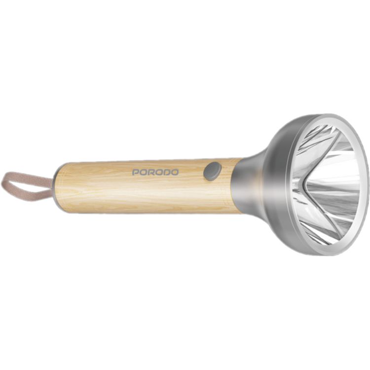 Porodo Birch 190 Wooden LED Flashlight with 190 Lumens Brightness, 100m Coverage, 1500mAh Battery Capacity, 5 Hours Charging Time, USB-C Charging Interface, 3-5 Hours Working Time, Multiple Mode Operation - Wooden