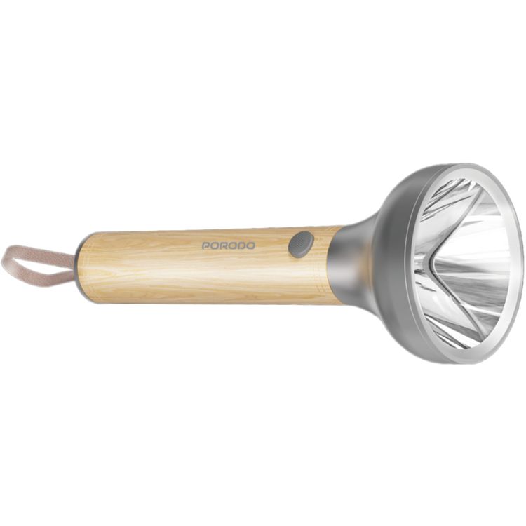 Porodo Birch 300 Wooden LED Flashlight with 300 Lumens Brightness, 150m Coverage, 2800mAh Battery Capacity, 3 Hours Charging Time, USB-C Charging Interface, 8 Hours Working Time, Multiple Mode Operation - Wooden