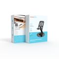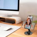 Porodo Blue 360° Rotating Base Desktop Phone Holder with Horizontal and Vertical Viewing, Foldable Design, Adjustable Arm, Stable and Non-Slip Base, One-Handed Operation, Universal Compatibility - Black