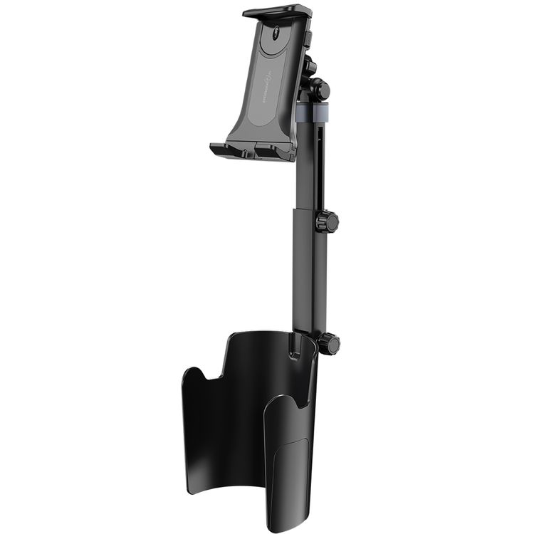 Porodo Blue Cradle Car Cup Holder with Adjustable Arm, Stable Cup Fit, Full-Angle Rotation, Extendable Length, Horizontal and Vertical Viewing, One-Handed Operation, Universal Compatibility, ABS and Silicone Material, 120-220 mm Clamp Size, Compatible with 5"-12.9" Devices - Black