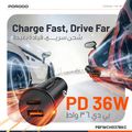 Porodo Blue Dual Port 30W Car Charger with Type-C to Type-C Cable, USB-C & USB-A Ports, 15W Shared Output, Polycarbonate Material - Black