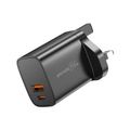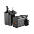 Porodo Blue Dual Port Wall Charger with 20W Power Delivery, Simultaneous Charging, 18W USB-A Output, UK 3-Pin Plug, Fireproof Material, Fast charging - Black