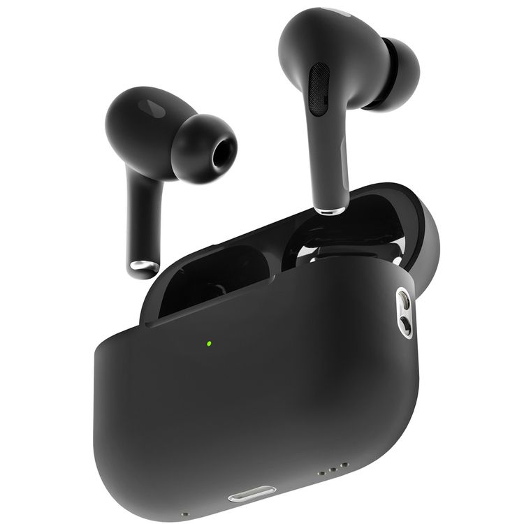 Porodo Blue Earbuds Pro 2 With Swipe Volume, 20 Hours Working Time, Wireless Charging, Deep Bass, Independent Earbuds, Touch Control - Black