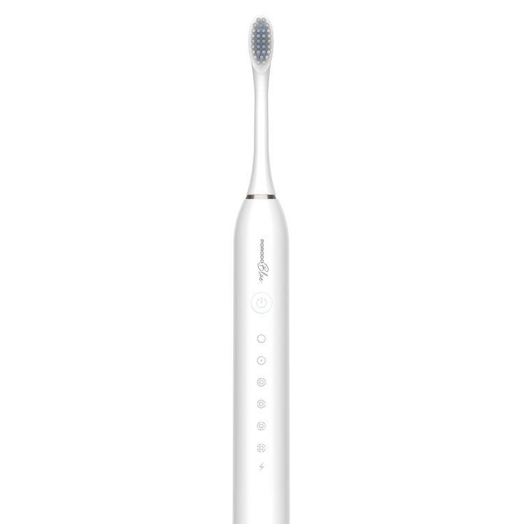 Porodo Blue Electric Toothbrush with Memory Function, 6 Cleaning Modes, 30 Days Battery Life, 500mAh Battery Capacity, 40000 Stroke/Minute Vibration Frequency, Replaceable Heads, Low-Noise Operation - White