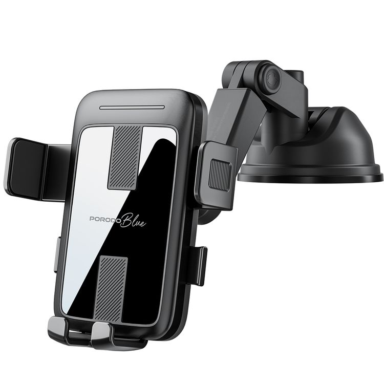 Porodo Blue Multi-Surface Mounting Car Phone Holder with Strong Suction Base, Adjustable Viewing Angle, One-Handed Operation, Full-Angle Rotating Base, One-Click Lock and Release, ABS Material, 1.5kg Load Capacity, Compatible with 4.5" - 6.5" Devices, Stable and Secure Hold - Black