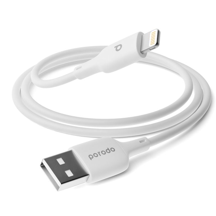 Porodo Blue PVC Lightning Cable 1m/3.2ft, USB-A to Lightning, 12W 5V/2.4A, Charge & Sync - White