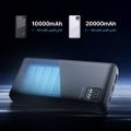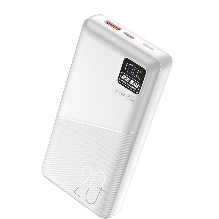 Porodo Blue Quick Charge Power Bank with USB-A & USB-C Outputs, 20000mAh Battery Capacity, Digital Display, 20W Power Delivery - White