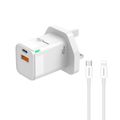 Porodo Blue Ultra-Quick Charger with 1m USB-C to Lightning Cable, USB-A & USB-C, 20W, 3A Output Current, 5V Output Voltage, Multi-Device Charging, Fast Charge Support - White