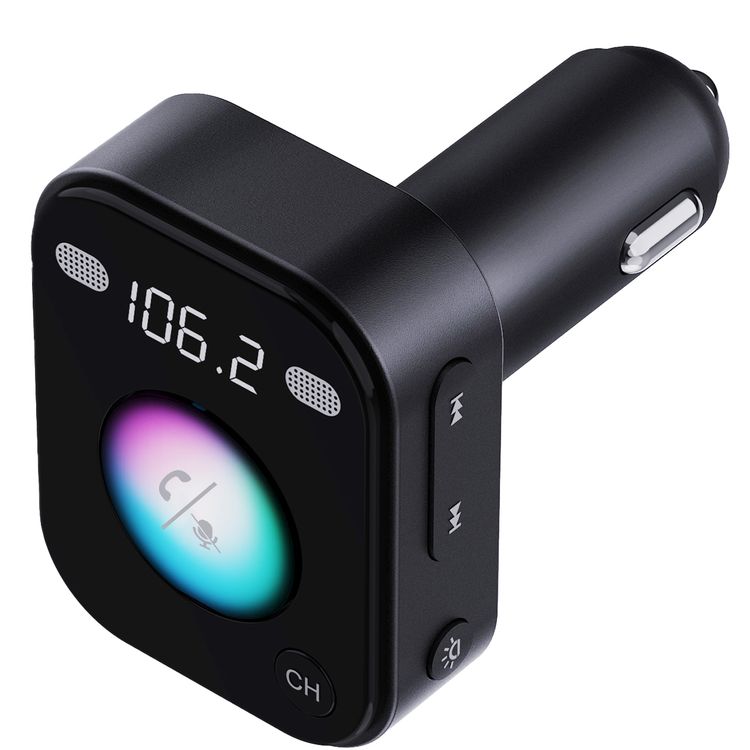 Porodo Bluetooth FM Transmitter with Voice Command, Mood Lighting, Hands-Free Calls, Bluetooth V5.4, PD 36W - Black