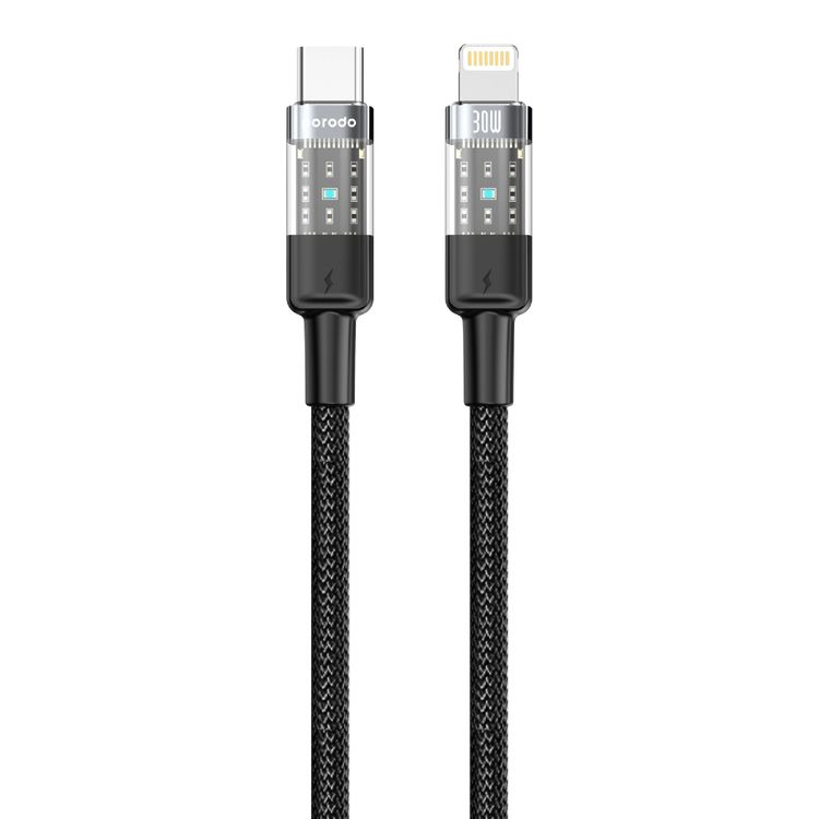 Porodo Braided USB-C to Lightning Cable with 30W Power Delivery, More than 15000 Bends, Tangle Free, Hight-Grade Components, 1.2m in Length - Black