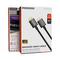 Porodo Braided HDMI Ultra HD Cable, High-Grade Connectors, High-Speed Streaming,1.8m Cable Length, HDMI Version 2.1 - Black