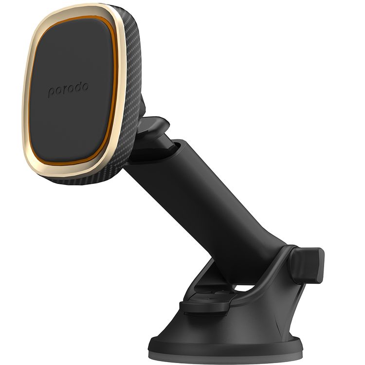 Porodo Car Mount, Aluminum Extension Stand Car Mount, 240° Rotating Arm, Re-Washable Stick-on Base, Strong Magnetic Car Mount Extendable Neck Mobile Phone Holder - Gold