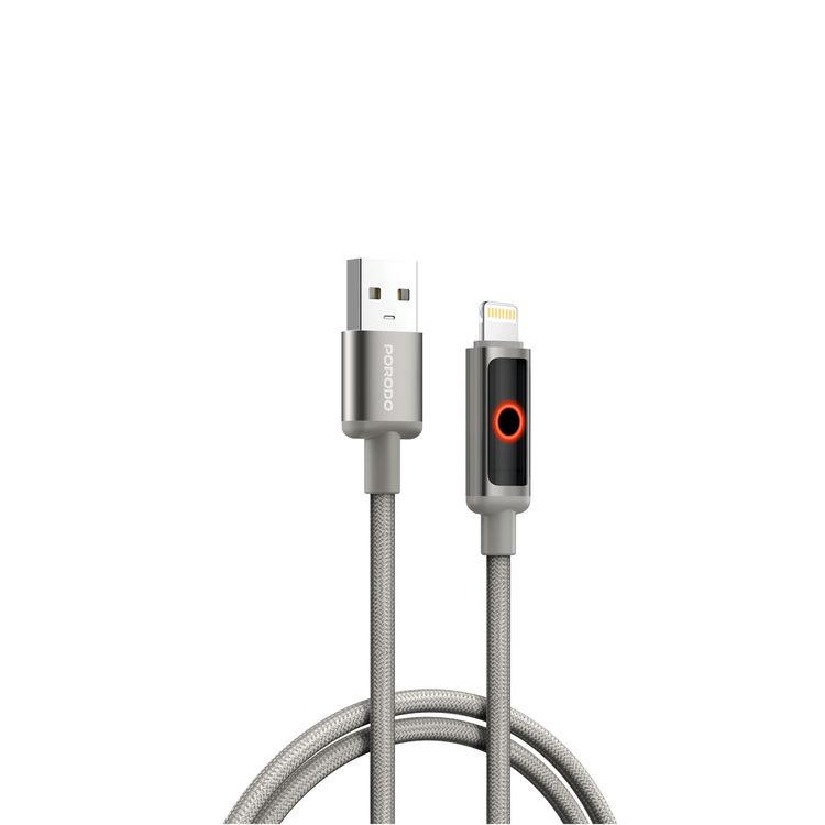 Porodo Charge Lite USB-A to Lightning Cable with High-Speed Charging, Braided & Aluminum Alloy Material, 1m Cable Length, 480Mbps Transfer Speed, Protect Battery - Gray