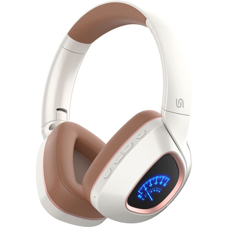 Porodo Clap ANC Wireless Headphones with LED Light Meter, High-Grade Microphone, 500mAh Battery Capacity, 2 Hours Charging Time, Bluetooth Version 5.4, 15m Transmission Distance, Up to 50 Hours Play Time, Hands-Free Calls, Foldable Design - Beige