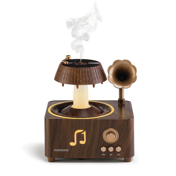 Porodo Concord Vintage Aroma Diffuser & Speaker with Simulate Raindrops, Colorful Lights, Remote Control, Rotating Raindrops, Built-in White Noise, Volume Control Dial, Instant Freshness, Delicate Moisture - Brown