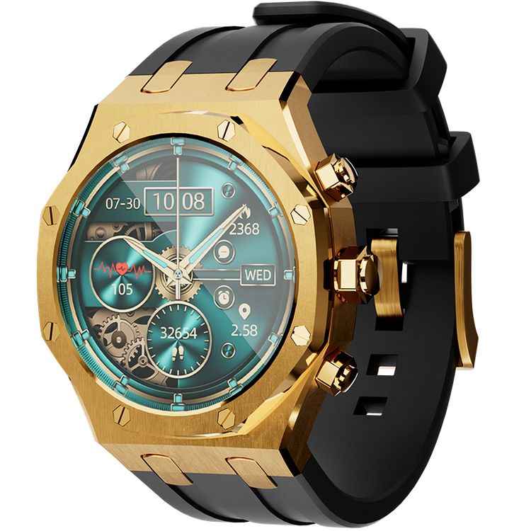 Porodo Cristallo AP Smart Watch 49mm with 1.43" AMOLED Display, 466x466p Resolution, 260mAh Lithium Polymer Battery, Bluetooth V3.0, V5.0, IP68, 128MB Flash Memory, 7-15 Days Working Time - Gold
