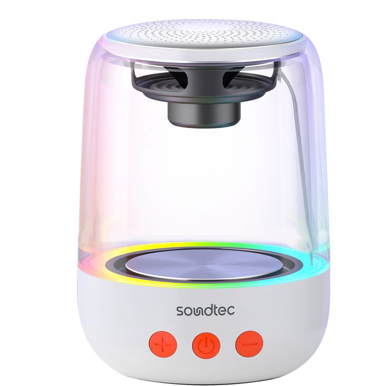 Porodo Crystal-Glow Mini Bluetooth Speaker with RGB Lights, Around 5 Hours Play Time, 1000mAh Battery, 10m Transmission Range, Bluetooth Version 5.4, USB-C Charging Port, Hands-Free Calls, TWS Pairing - White
