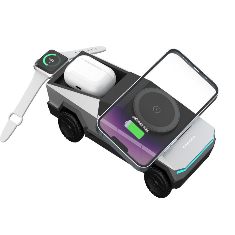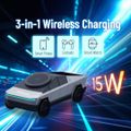 Porodo Cyber Dock 3-in-1 Wireless Charger with 15W Wireless Charging, 5W Earbuds Output, 2.5W Watch Output, 3-6mm Charging Distance, USB-C Charging Interface, 90°Motorized Rotation Stand - Gray