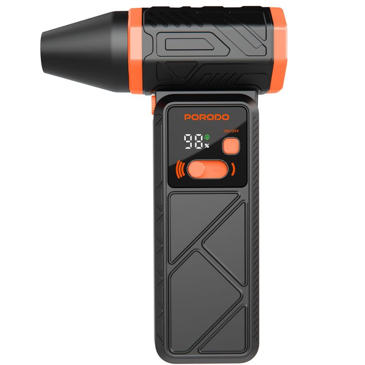 Porodo Cyclon Rotatable Turbo Blower Fan, 13000RPM Motor Speed, Up to 240 Minutes Working Time, LED Light Function, 90° Rotating Head, 0-100 Speed Adjustment - Black