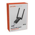 Porodo Dual Band WiFi Adapter with External Antenna, High-Speed USB 3.0, Windows OS Compatibility - Black