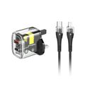 Porodo Dual Output Transparent Quick Charger with USB-C to Lightning Cable, 20W Power Delivery, Simultaneous Charging, 18W USB-A Output, 0%-60% Charge in 35 Minutes, Overheat Protection - Black