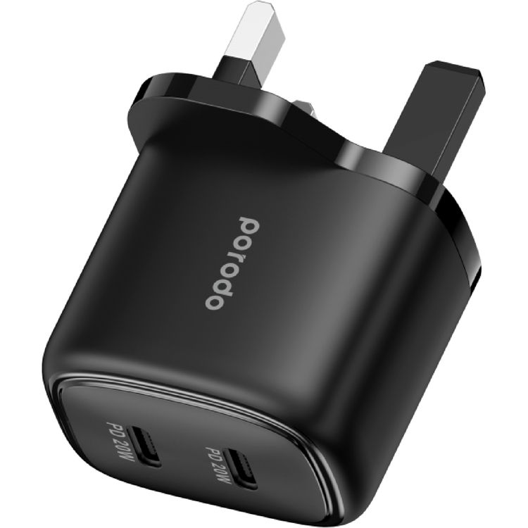 Porodo Dual Port USB-C Wall Charger Charge Two Devices Simultaneously - Black