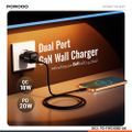 Porodo Dual-Port Wall Charger with 20W Power Delivery, EU Plug, QC 18W, Simultaneous Charging, Overheat Protection, USB-C & USB-A Outputs - Black