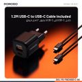 Porodo Dual-Port Wall Charger with Type-C to Type-C Cable Included, 20W Power Delivery, EU Plug, QC 18W, Simultaneous Charging, Overheat Protection, USB-C & USB-A Outputs - Black