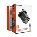 Porodo Dual-Port Quick Wall Charger with Type-C to Type-C Included, 35W Power Delivery, Built-in Safeguards, Digital Display, 0.8A Maximum Rated Current, GaN Technology - Black