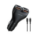 Porodo Dual Power Car Charger with USB-C to USB-C Cable, PD 30W, QC 18W, ×2 USB-A & ×2 USB-C Ports, 102W High Power Output, Fast Charging Technology, Smart Charging Protocols, Compact Design - Black
