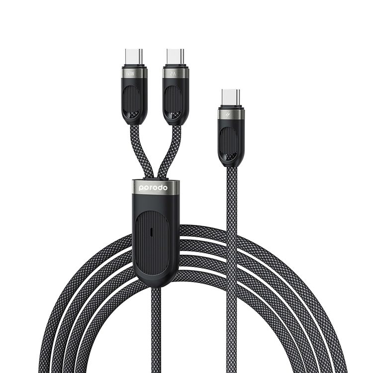 Porodo Dual Type-C Fast Charging Cable with Type-C Input Interface, Simultaneous Charging, Universal Compatibility, 60W USB-C1 Output, Braided Outer Material - Black