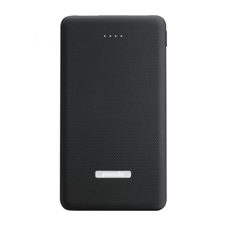 Porodo Dual USB Universal Power Bank 10000mAh with Rubberised Surface, Compact Slim Design, Portable, LED Indicator, Compatible with Smartphones - Black