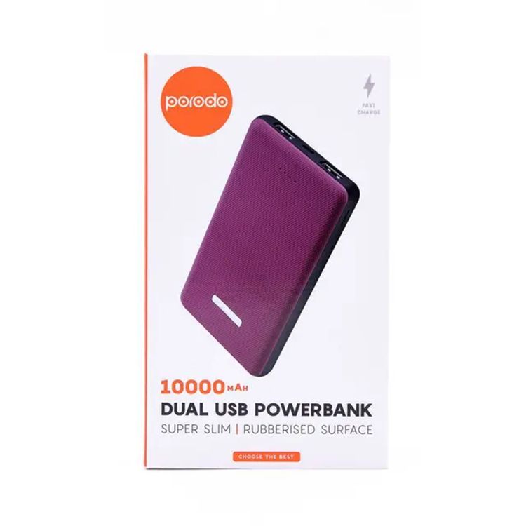 Porodo Dual USB Universal Power Bank 10000mAh with Rubberised Surface, Compact Slim Design, Portable, LED Indicator, Compatible with Smartphones - Red
