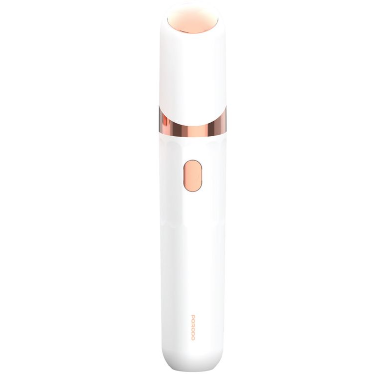 Porodo Electric Facial Hair Epilator with 360° LED Light, 8500RPM Motor Speed, Up to 60 Minutes Working Time, USB-C Charging Port, 1.5W Rated Power, 350mAh Battery - White