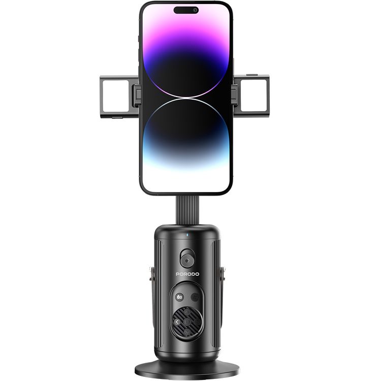 Porodo Face Tracking Smart Mount with Wireless Shutter, Detachable Fill Light, Gesture Control, Lightweight Design, 1800 mAh Battery - Black
