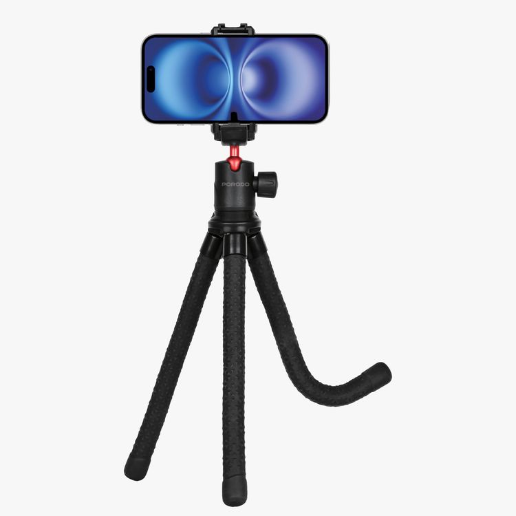 Porodo Flexible Foldable & Extendable Tripod with Phone Holder, ABS + Rubber Material, Non-Slip Grip, 330mm Folded Length, Lightweight & Portable, 39cm Extended Height - Black