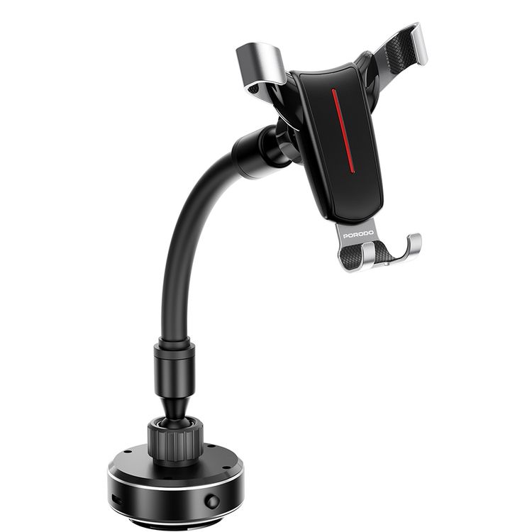 Porodo FlexiMount Universal Phone Holder with Powerful Suction, Adjustable Horizontal & Vertical Viewing, 360° Rotation, 100mAh Battery, ABS, Silicone & Aluminum Alloy Material, 18-65kPa Suction Power - Black