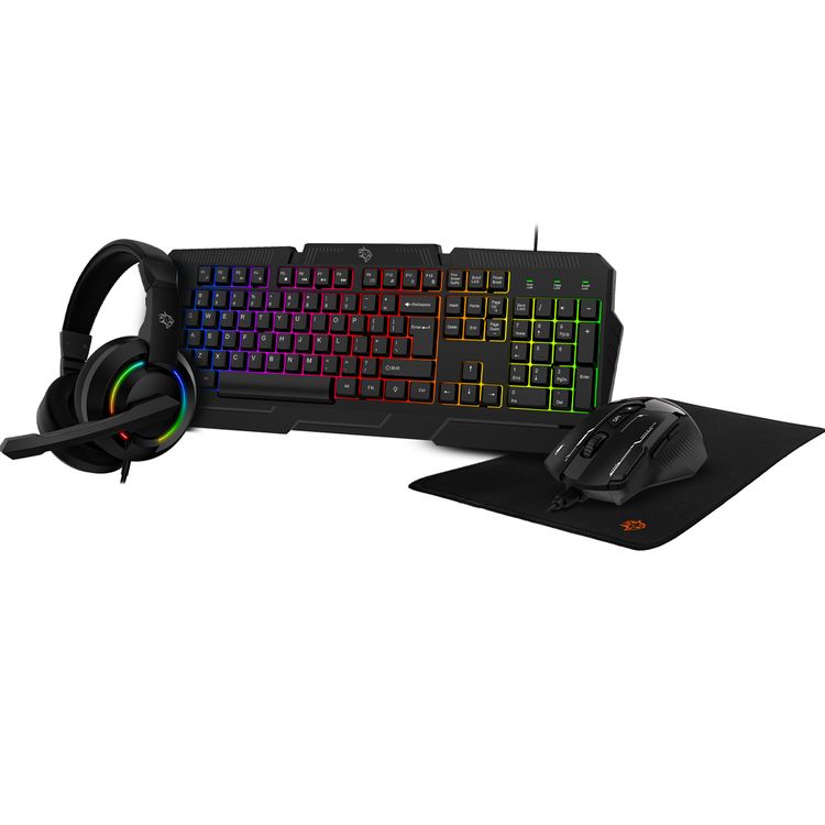 Porodo Gaming 4 in 1 Gaming Kit with Keyboard, Head phone, Mouse and Mouse Pad, Windows and Linux Compatibility, 13 RGB Light Mode - Black