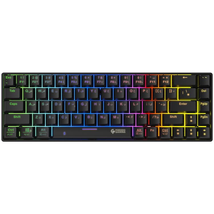 Porodo Gaming 68Keys Mechanical Keyboard with Wired and Bluetooth Dual Version ( English / Arabic ) - Black