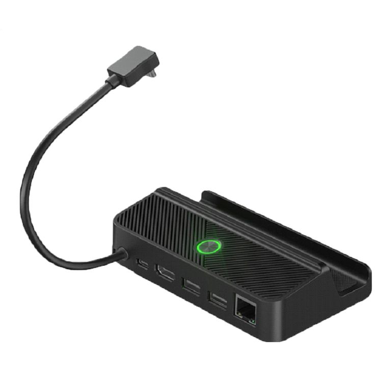 Porodo Gaming Steam Deck Hub with Heat Dissipation Cooling Technology, 1000Mbps Ethernet Gigabit, RGB Lights, 100W Power Delivery, Hight-Speed WLAN - Black