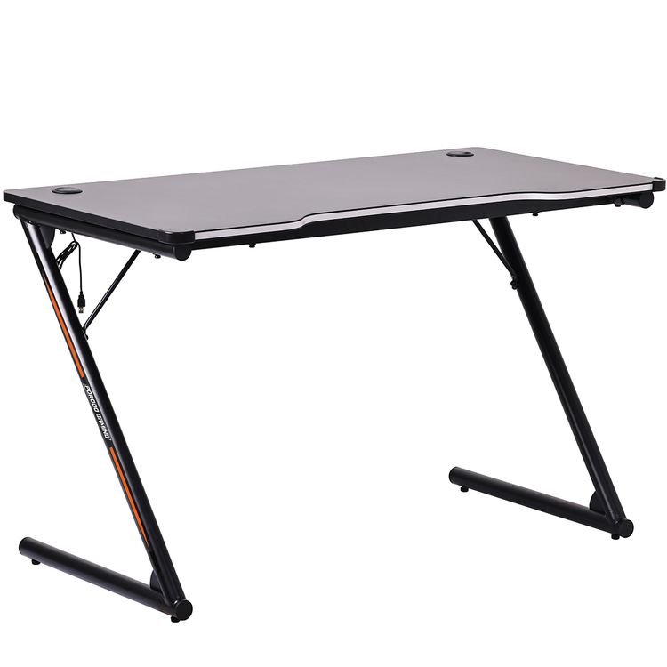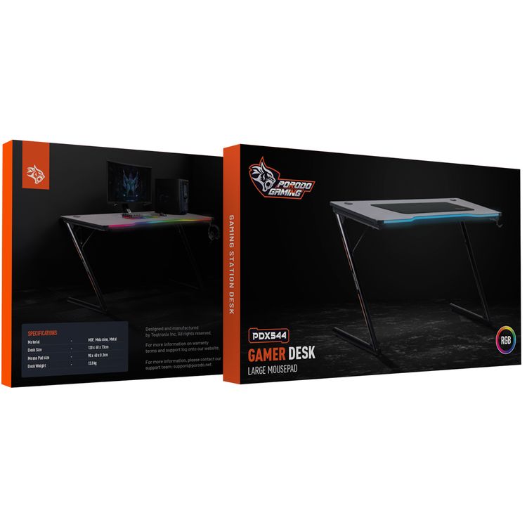 Porodo Gaming Table with Gaming Mousepad, RGB LED Light, Metal Frame, Easy to Clean, Patented Design, MDF & Melamine Material - Black