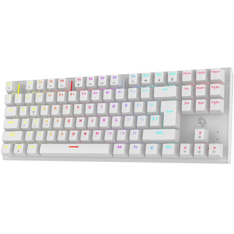 Porodo Gaming TKL Mechanical Keyboard with 12 RGB Light Modes, 25 Anti-Ghosting Keys, 50 Million Clicks Lifespan, 1.5m PVC Cable, Plug & Play, English & Arabic Keys - White